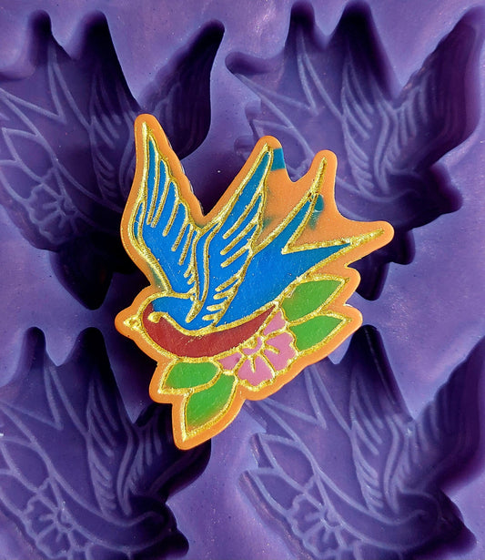 Tattoo Style Swallow 6 Cell Silicone Mould for wax, resin and more