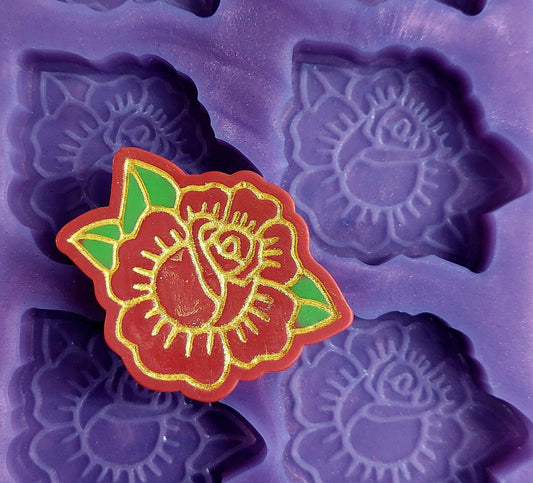 Tattoo Rose 6 Cell Silicone Mould for wax, resin and more